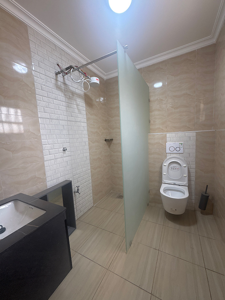 The modern kitchen is fitted with quality cabinetry, granite countertops, and adequate storage space, making it both functional and stylish. A separate domestic staff quarter (DSQ) is included, ideal for live-in staff or additional storage.